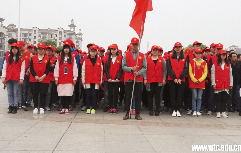 图为:葛店校区志愿者参加葛店经济开发区交通秩序综合整治“百日会站”动员大会
