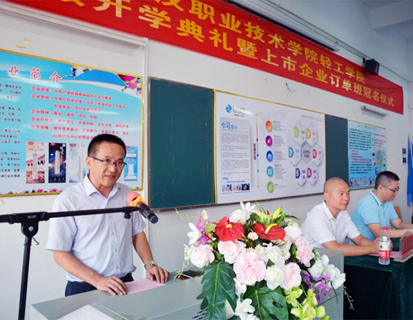 图为:武职轻工学院2017级开学典礼暨上市企业订单班冠名仪式