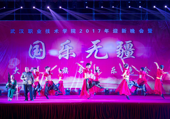 武职网讯(通讯员 余娜 大学生记者团 吴贤奇 摄影 饶玲 杨金礼 陈笑笑 常娜)“来吧!朋友,伸出你的手,我和你,永远一家人。”9月25日晚7:00,我校2017年迎新晚会光谷东校区专场暨“国乐无疆”大型民族歌舞乐晚会在光谷东校区田径场精彩上演,来自武汉市歌舞剧院的艺术家们登台献艺,带来一场别开生面的民族器乐和歌舞视听盛宴。葛店开发区管委会副主任万兴平、我校副校长刁元斌与光谷东校区3500余名师生观看了晚会。