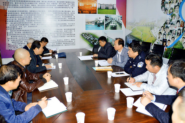 刁元斌重点汇报了学校党委行政以高度的政治责任感,认真做好学校暨光谷东校区安全稳定工作的情况。刁元斌讲道,学校党委行政一直十分重视学校暨科教园区的安全稳定工作,坚持安全稳定工作“一把手”负责制,坚持安全稳定工作常抓不懈,学校党委对迎接党的十九大召开安全稳定工作进行了周密的安排部署,把安全稳定工作作为干部履职尽责的重要考核内容。