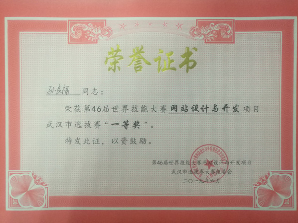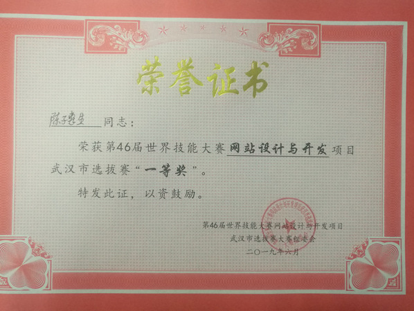 第46届世赛武汉选拔赛获一等奖