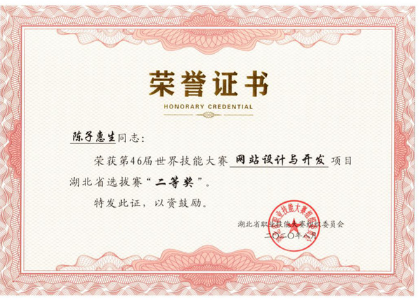 第46届世赛湖北选拔赛获二等奖