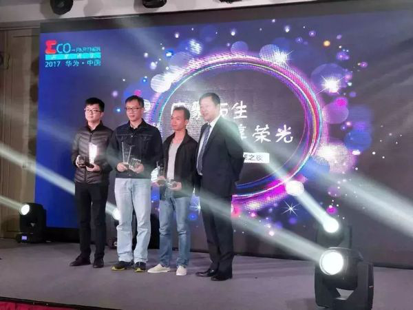 华为授予学霸奖——网络13310班网络安全方向陶天宝(左一) 就职于深圳市卓优数据科技公司,
