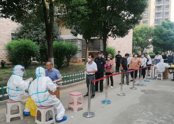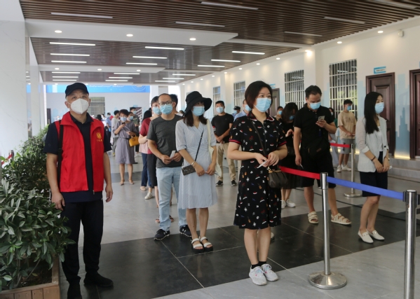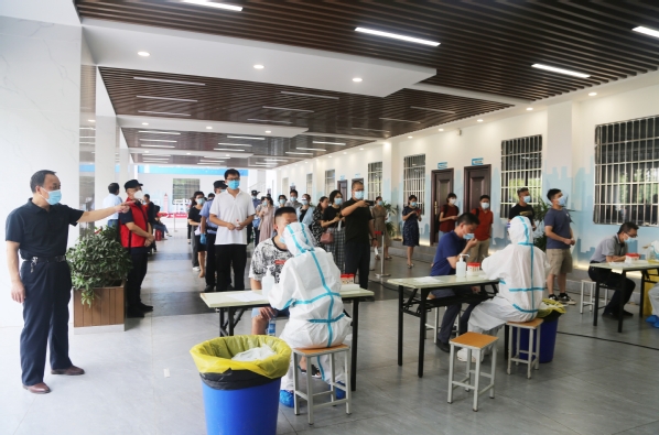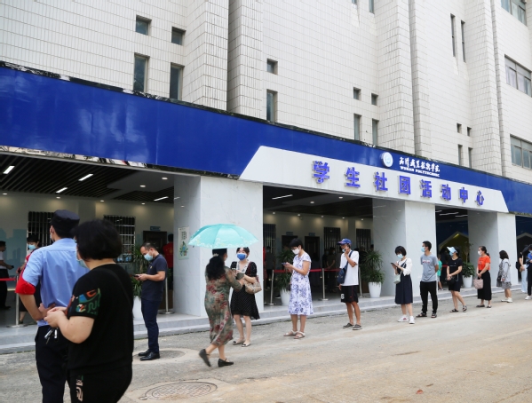 教职工排队等候核酸咽拭子采样检测
