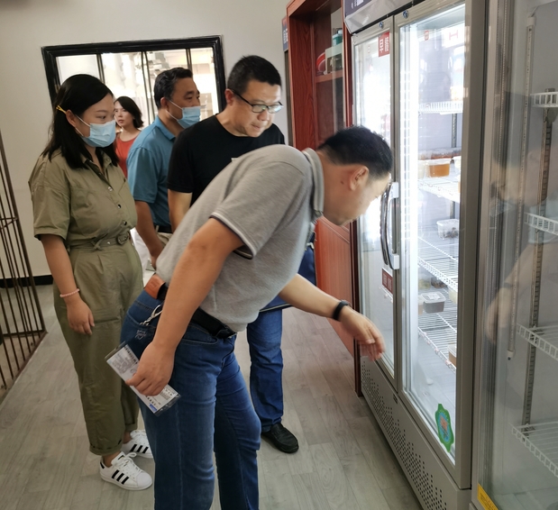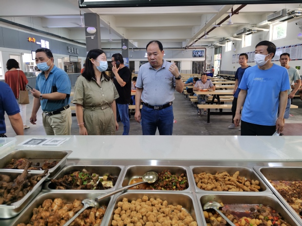 在装修一新的园区一食堂,刁元斌逐一检查大门入口体温自动检测设施、公共清洁消毒设施设备、“一米线”安全标识等防疫措施,询问菜品质量价格管控措施和供餐能力,深入餐具清洗消毒车间查看设施设备状况,检查生熟食品食材分类管理和食材取样留存管理工作落实情况。刁元斌要求园区管委会切实加强食堂供餐质量和供餐价格监督管理,落实食品安全管理责任制,让师生吃的放心,努力提升服务满意度。