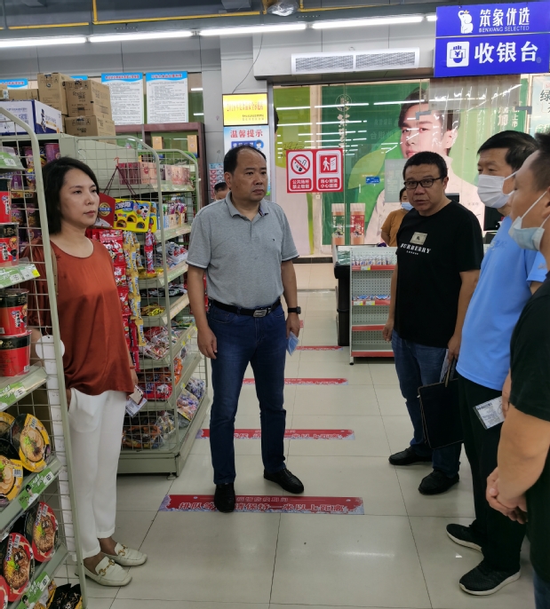 在园区超市,刁元斌询问学生学习生活用品备货情况,检查了解商品价格和质量管控措施、商品进货渠道,仔细查看超市所售饮料食品生产日期、QS安全标识等食品安全保障信息。刁元斌特别叮嘱经营方要严把商品进货质量关。