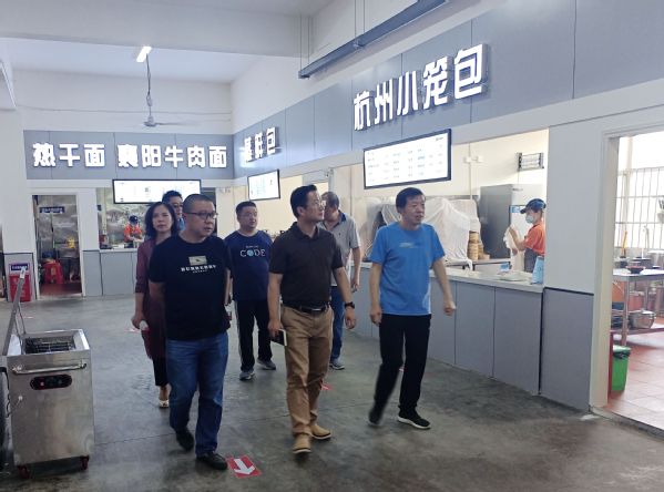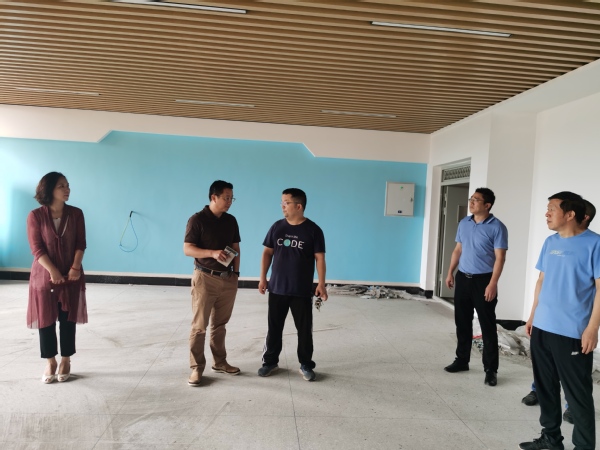 郭沙先后实地察看了实训基地大楼信创学院开放式办公区域和教学场所、智能商务学院物流实训基地和电商运营实训室装修施工现场、科教园区第三期建设用地、学生公寓楼、科教园区超市和食堂等场所。