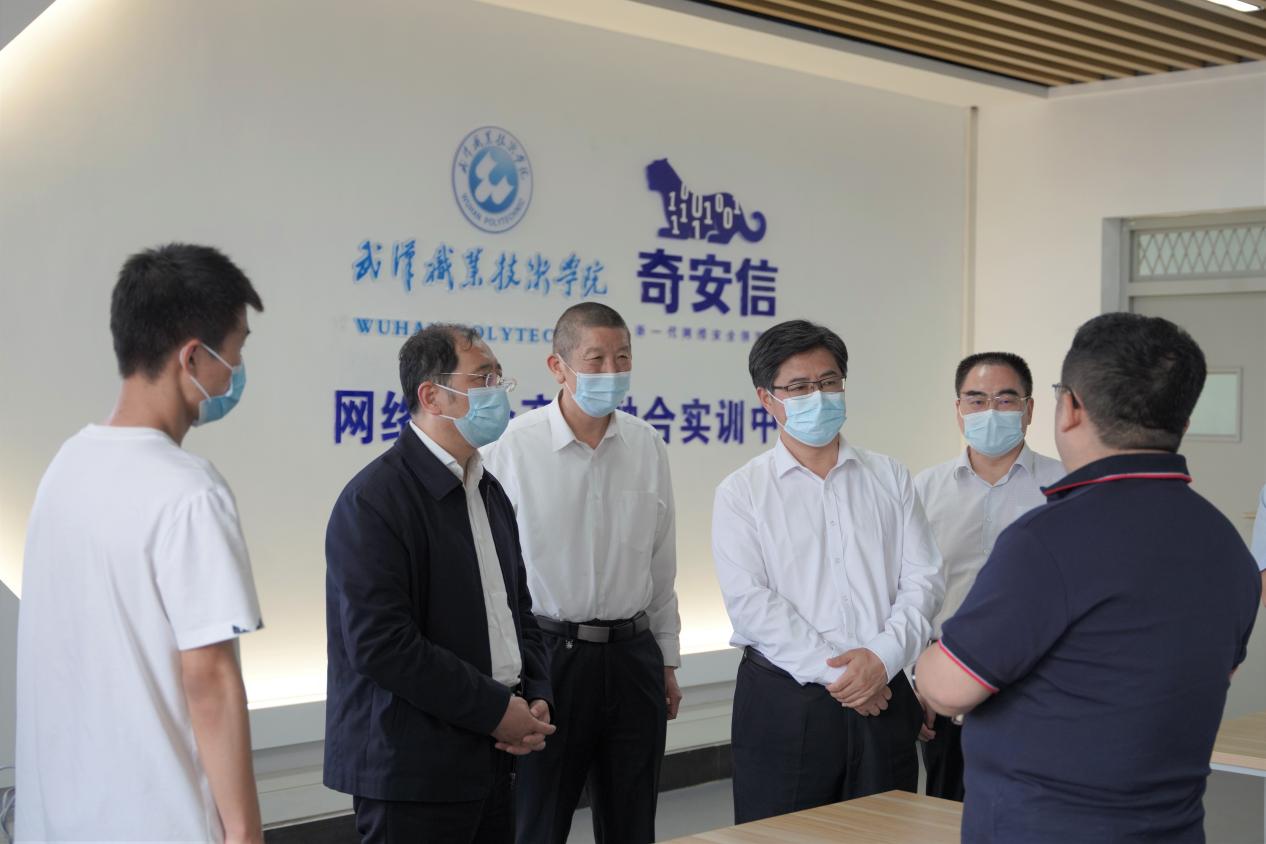 武职网讯(通讯员 史金昱 摄影 史金昱 谢晖)5月17日,省委教育工委专职副书记、省教育厅党组成员张幸平,鄂州市委副书记、政法委书记徐艳国一行到武汉职业技术学院光谷东校区调研。省教育厅职成处处长何泽云,鄂州市委副秘书长周文兴,葛店开发区党工委副书记、管委会主任高飞、副主任黄晓明,鄂州市发改委(市优化办)、市教育局、市科技局、市经信局、市人社局主要负责人,葛店开发区党政办、经发局、财金局、葛店镇、税务局、自规分局、拆迁办主要负责人参加调研。学校党委书记李洪渠、校长鄢烈洲、副校长李仁平陪同调研。