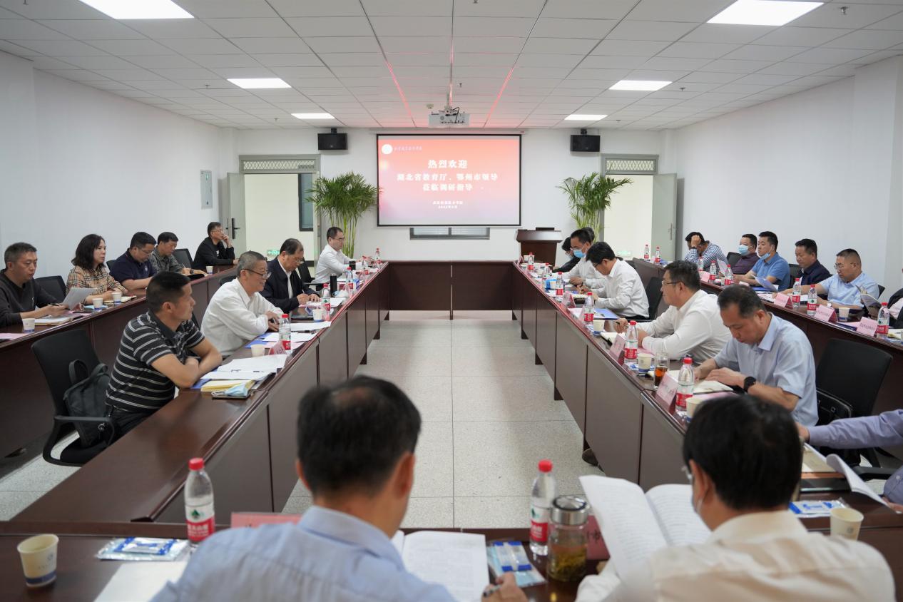 调研会上,学校党委书记李洪渠介绍了学校办学情况。他指出,学校办学已有49年历史,在葛店办学15年来,在省教育厅正确领导下,在鄂州市和葛店开发区大力支持下,始终坚持社会主义办学方向,紧紧围绕立德树人根本任务,主动服务湖北区域经济发展,以实际办学成绩赢得了社会的广泛认可。同时,在扎根葛店、服务葛店的办学实践中,学校也面临着一些实际困难和难题,特别是征地拆迁、政策兑现等需要得到鄂州市、葛店开发区的重视和支持,帮助妥善解决,以便学校轻装上阵,专注办学水平提升,更好为区域经济社会发展作出新贡献。