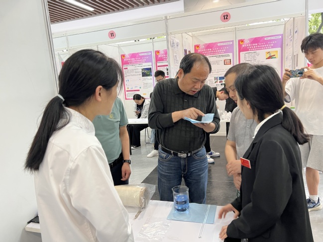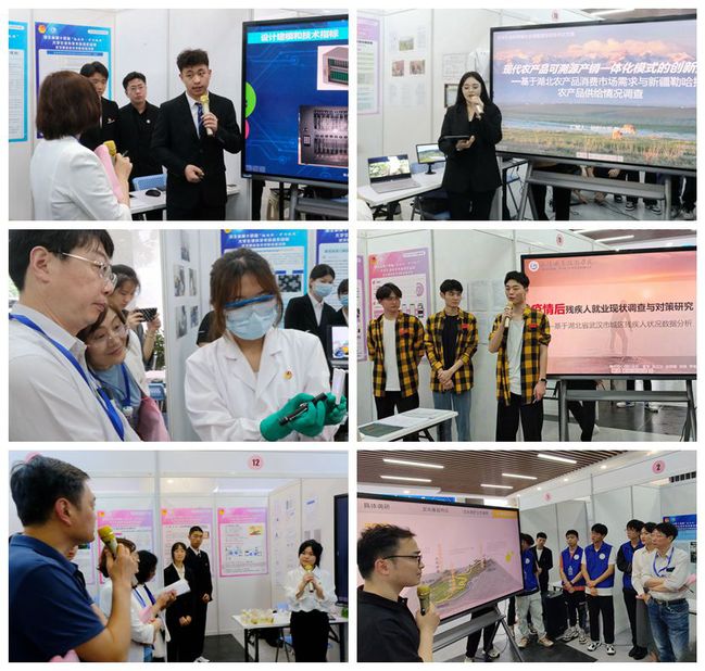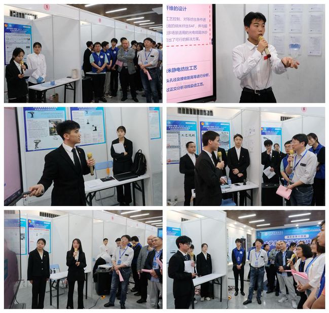 优秀项目团队成员着装整齐,信心满满,通过项目陈述、实验模拟、实物展示、专利证书及期刊论文展示等方式,充分展现参赛项目团队风采。