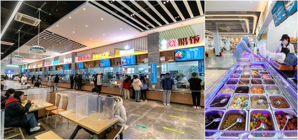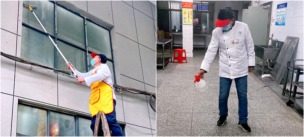 校园里,保洁人员认真清扫地面,营造干净整洁美丽校园;保卫人员全员到岗,全面巡查,确保校园安全稳定;学校食堂菜品丰富,卫生可口,师生开心用餐,其乐融融。