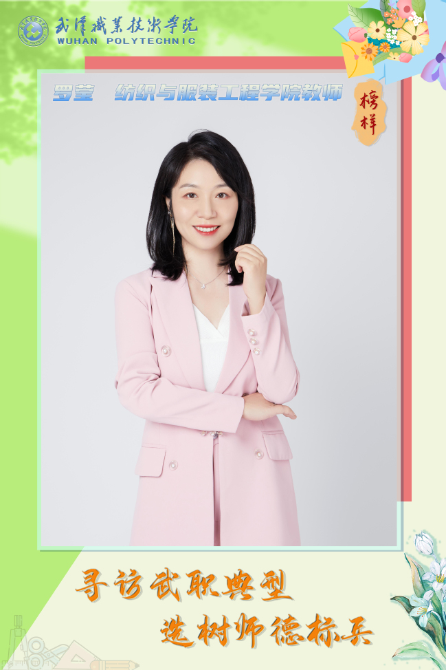罗莹,2006年毕业于湖北工业大学艺术设计学院,同年进入武汉职业技术学院任教。十七年来,在教书育人岗位上,认认真真,兢兢业业,尽心尽责,诠释着一名教师对教育事业的热爱和执着。
