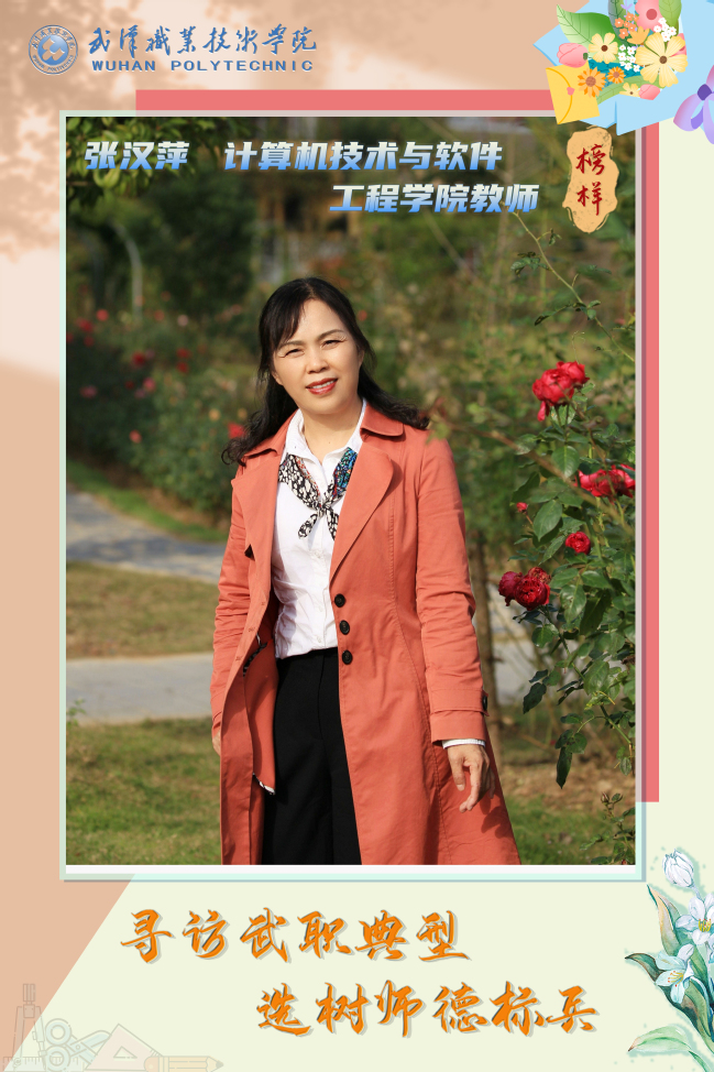 【编者按】师德师风是教师队伍建设的灵魂。为深入学习贯彻宣传党的二十大精神,树立和表彰师德先进典型,弘扬新时代人民教师教书育人、为人师表、爱岗敬业、热爱学生、乐于奉献、勇于作为的优良传统,根据《武汉职业技术学院“十佳师德标兵”评选表彰办法》(武职党〔2017〕59号),现面向全校深入挖掘优秀教师先进事迹、选树师德标兵,传递正能量,充分发挥典型引领示范和带动作用,为武汉职业技术学院 50 年校庆营造良好校园文化建设氛围。校工会联合党委宣传部从3月至6月通过学校官网与官微以“寻访武职典型,选树师德标兵”为主题,每月推出第七届武汉职业技术学院“十佳师德标兵”候选人事迹风采。第二期推出的“师德标兵”候选人有张汉萍、江群、罗莹、万煜、吴方。