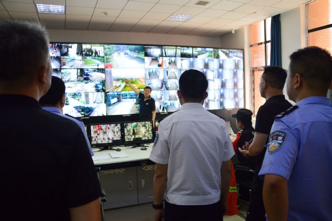 方宁一行对园区学生宿舍、食堂、监控室等重点部位进行了检查,参观了园区周边环境和信创学院鸿蒙工坊、360信息安全科普基地等国产化特色实训室,听取了科教园区管委会主任周会川和学校保卫处副处长项洪文所作的汇报,对科教园区平安校园建设工作给予了充分肯定。