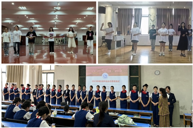 自5月8日接到参演通知以来,学校高度重视,由校办牵头,科教园区管委会、学生工作处、旅游与航空服务学院(以下简称“旅游学院”)组成工作专班,精心组织和筹备志愿者的动员、面试和选拔工作。科教园区管委会主任周会川、学生工作处副处长夏挺全程参与志愿者的动员、报名和选拔工作,并为学生排练、集训、参演的安全和后勤保障工作积极与组委会沟通,最终在200余名报名学子中遴选确定旅游学院61名学生志愿者。其中,开闭幕式19名举牌手和引导员全部由旅游学院学生担任,其余42名学生参加开幕式开场舞《模范铜鉴》和第一篇章第三个节目《春满鄂城》表演。