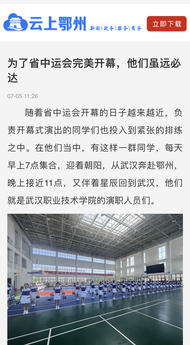旅游学院师生们的表现深深感动了组委会。7月5日,组委会以“为了省中运会完美开幕,他们虽远必达”为题写了一篇专题报道,并在“云上鄂州”发布。